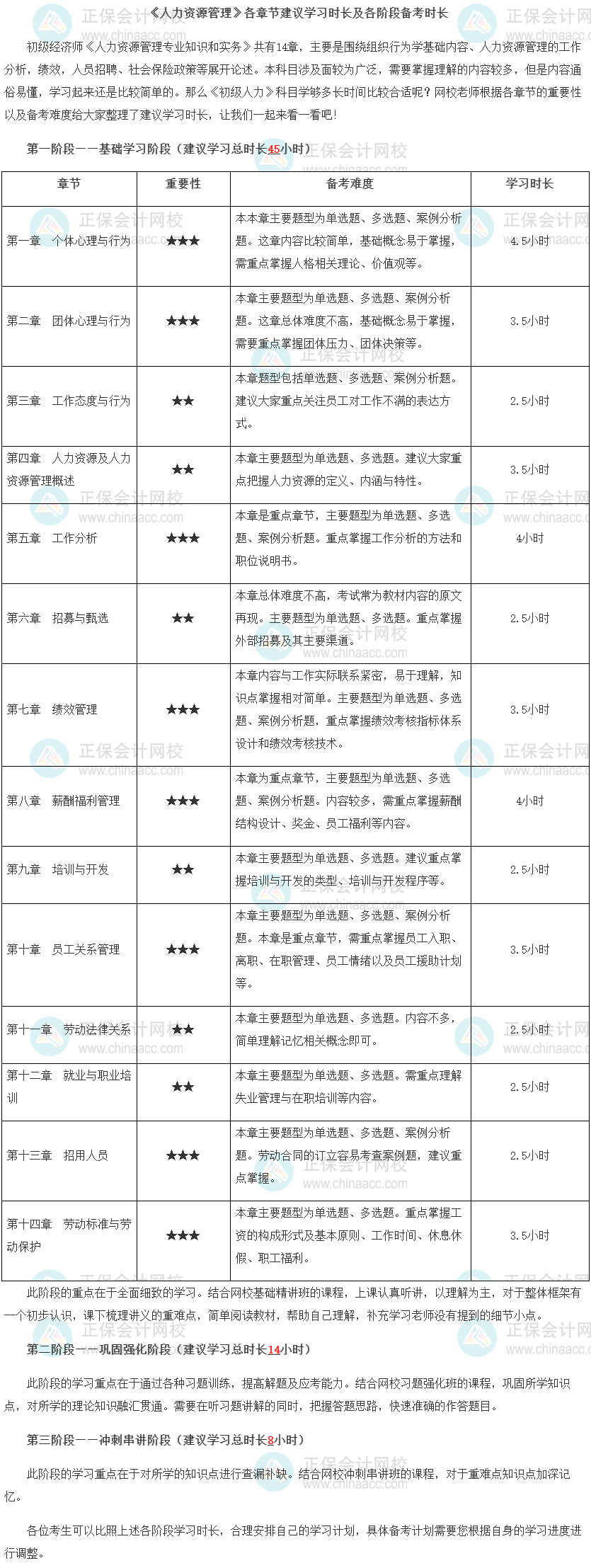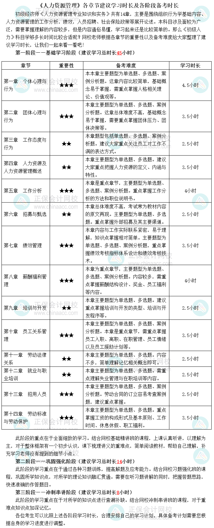 初级经济师2023年备考需要多久?报考人力资源管理专业的小伙伴看过来,网校老师整理了初级经济师《人力资源》各章建议学习时长及各阶段备考时长,建议学习人力资源管理专业67小时!