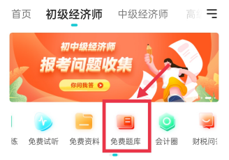 打开APP,选择“初级经济师”栏目,点击“免费题库”进入,这里包括经济基础知识/工商管理/人力资源/金融/财政税收的题,想怎么刷就怎么刷!
