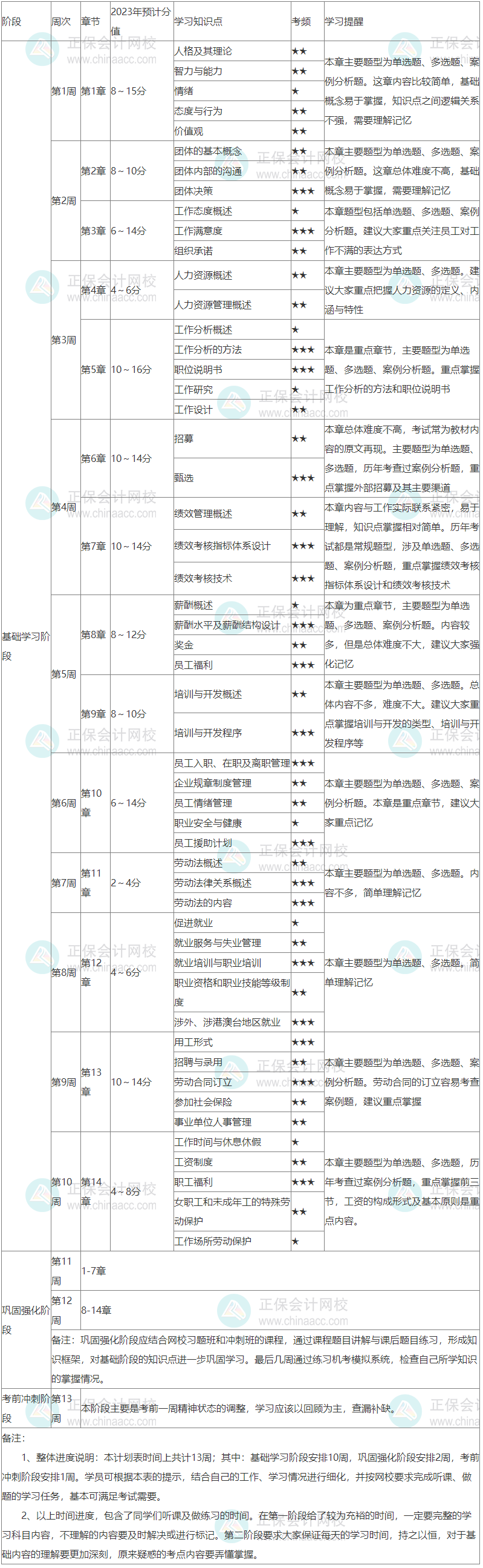 2023初级经济师人力资源管理学习计划及各章预计分值