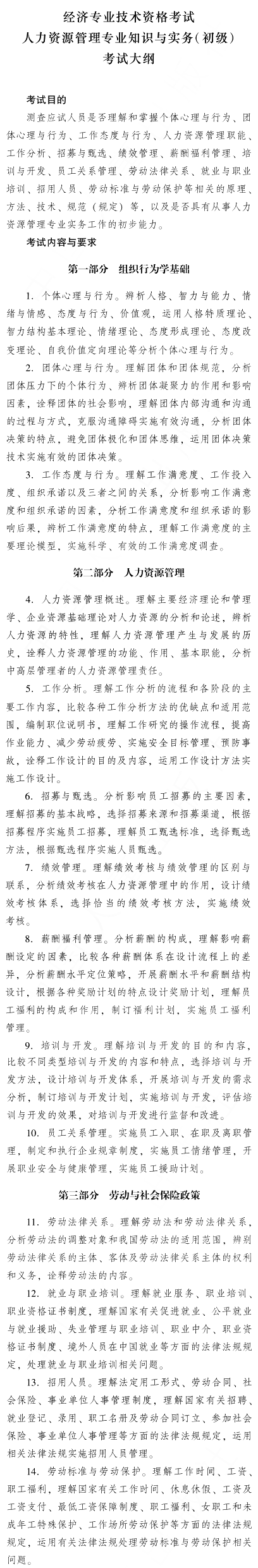 2019年经济师考试大纲现已正式公布!正保会计网校特意为考生整理了考试大纲,供经济师考试备考学员学习,以下是2019年初级经济师《人力资源管理专业知识与实务》考试大纲,供广大学员参考学习。