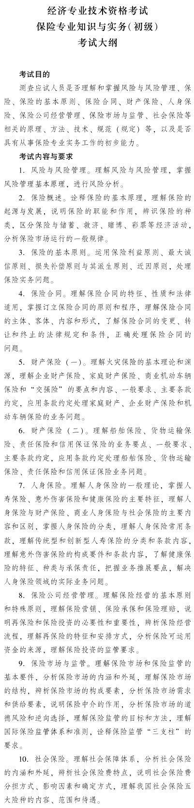 2019年经济师考试大纲现已正式公布!正保会计网校特意为考生整理了考试大纲,供经济师考试备考学员学习,以下是2019年初级经济师《保险专业知识与实务》考试大纲,供广大学员参考学习。