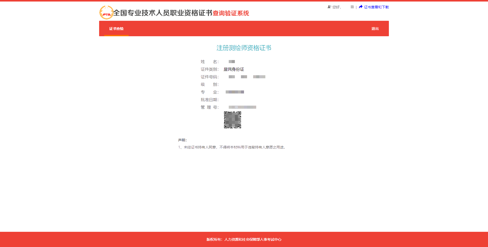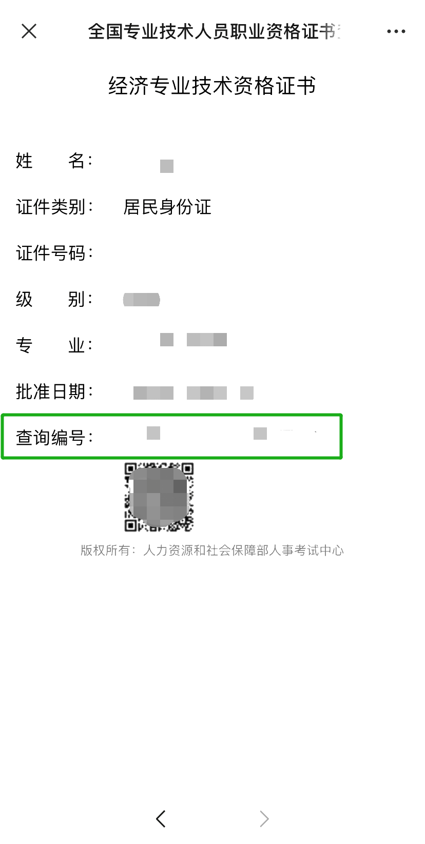 [证书查验]通过中国人事考试网“专业技术人员职业资格证书查询验证系统”,查验证书信息。