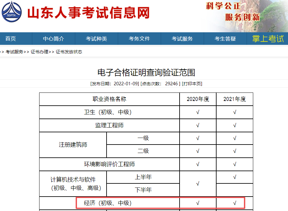 摘要:山东人事考试信息网发布“电子合格证明查验范围”,2021年山东初级经济师电子证书已开始查询验证了!