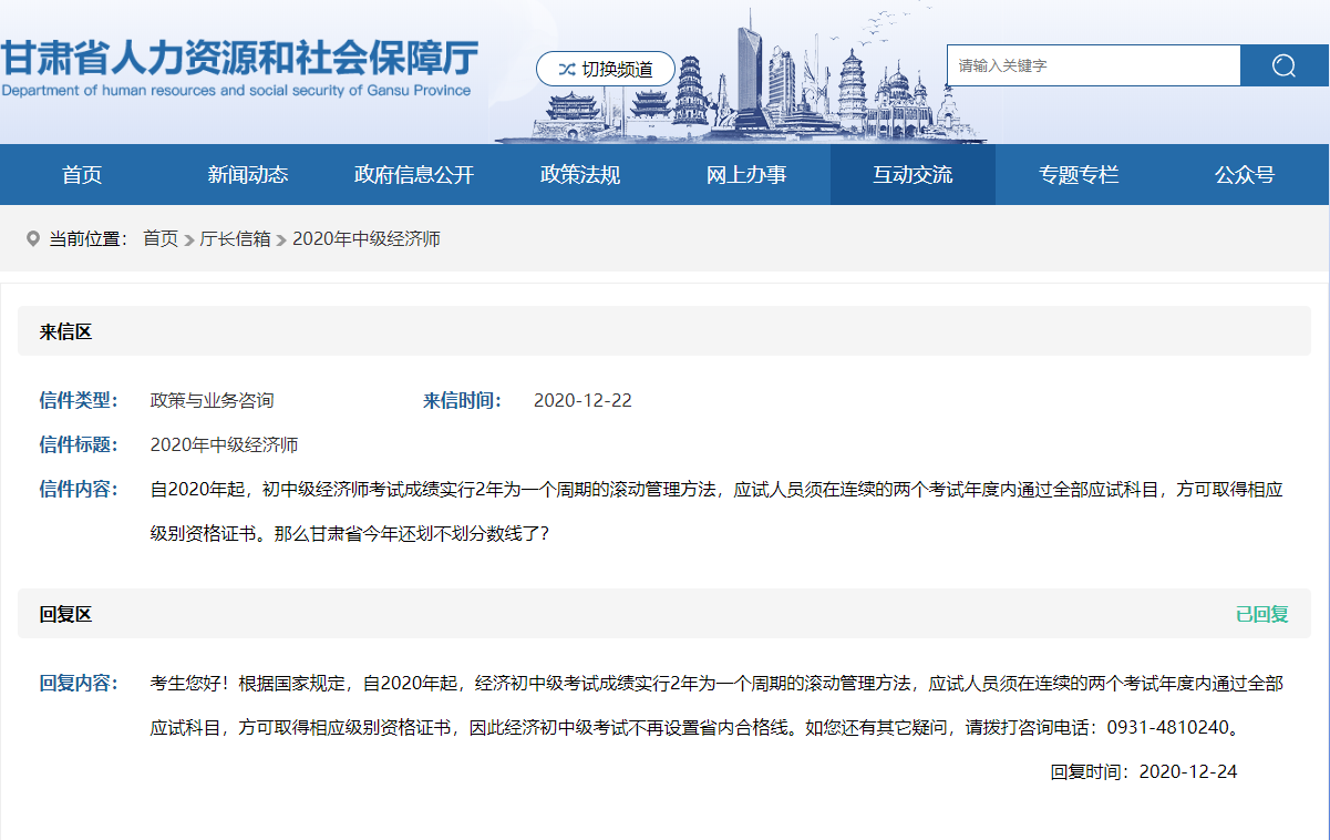2020年甘肃初中级经济师考试还会设置省内合格标准吗?相信,甘肃的考生都比较关注。小编发现,近期,已有考生咨询了甘肃人社厅该问题。官方回复:经济初中级考试不再设置省内合格线。