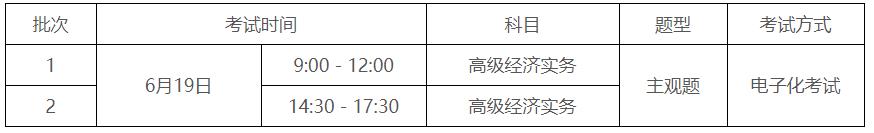 高级经济专业技术资格考试(以下简称“高级考试”)设《高级经济实务》1个科目,在1天内分上、下午2个批次实施。各批次考试安排如下: