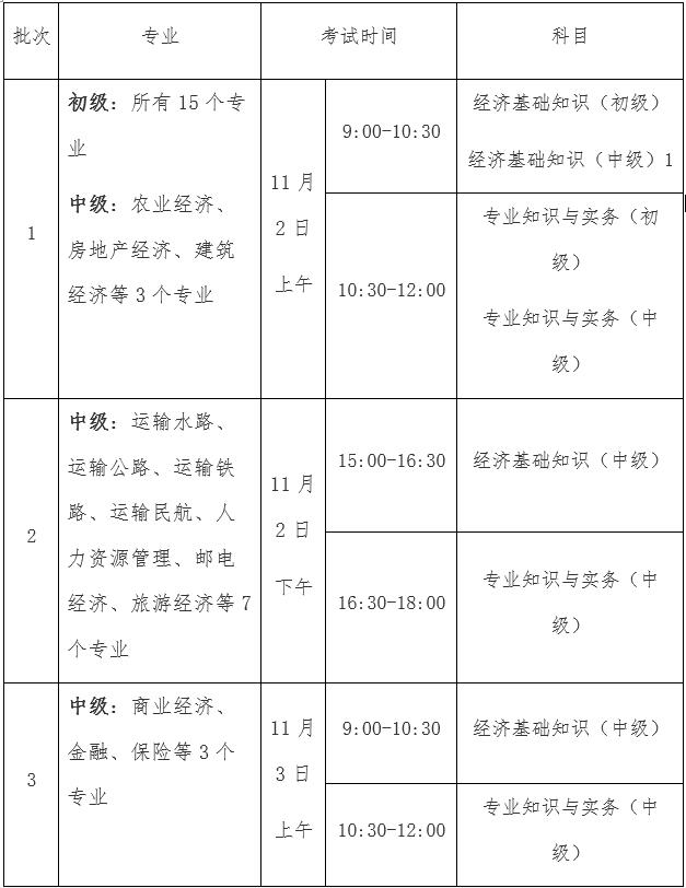 2019年度经济专业技术资格考试于11月2日、3日举行,考试形式为电子化考试,按级别、专业分2天上、下午4个批次实施,具体安排见附件1。若遇特殊情况无法正常完成考试,统一于11月10日组织补考。