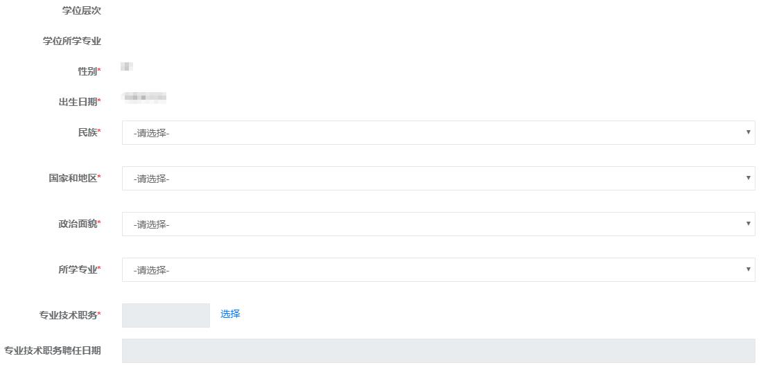 专业技术职务*:下拉,按照自己情况选择,没有填写无。