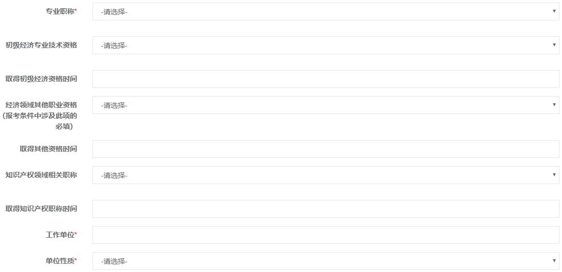经济领域其他职业资格(报考条件中涉及此项的必填):非必填项,下拉按照自己情况选择