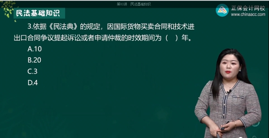 【解析】根据我国《民法典》第594条规定,因国际货物买卖合同和技术进出口合同争议提起诉讼或者申请仲裁的时效期间为4年。