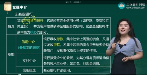 【解析】信用中介功能是指银行吸收存款,集中社会上闲置的资金;又通过发放贷款,将集中起来的资金贷放给资金短缺部门,发挥着化货币为资本的作用。