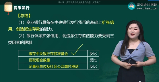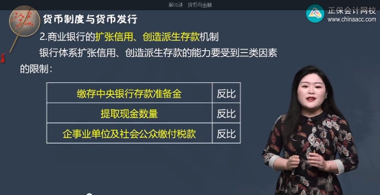 【解析】一般来说,银行体系扩张信用、创造派生存款的能力要受到三类因素的制约:受到缴存中央银行存款准备金的限制;受到提取现金数量的限制;受到企事业单位及社会公众缴付税款等的限制。