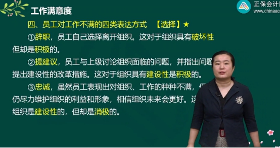 【出题角度】本题考查员工对工作不满的四类表达方式。