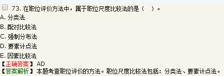 【解析】本题考查职位评价方法。参加教材P122。