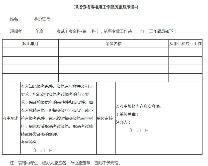 云南经济师考试实行考后资格复审,需要考生提供本人所在单位出具的工作简历表及承诺书、身份证、教育行政部门认可的学历(学位)证书、证明及其他报名条件中要求的专业技术职务证书和资格证书原件和复印件各1份。正保会计网校小编特搜集整理了“云南经济师现场资格审核用工作简历表及承诺书”,希望对您有帮助。