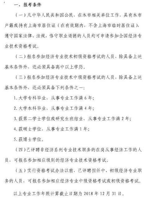 参加2019年上海初级经济师考试要具备哪些条件?