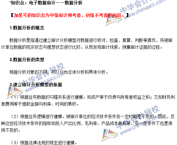 我们一起来学习2016年初级审计师《审计理论与实务》高频考点:电子数据审计——数据分析。本考点属于《审计理论与实务》第一部分审计理论与方法中第十一章计算机审计的内容。