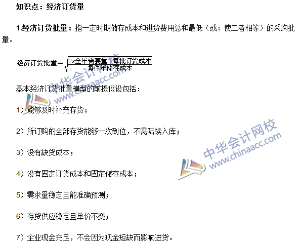 我们一起来学习2016年初级审计师《审计专业相关知识》高频考点:经济订货量。本考点属于《审计专业相关知识》第二部分企业财务管理中第五章营运资本管理的内容。