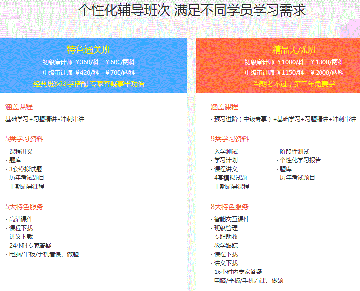 1、审计师考试辅导课程采用渐进式学习体系,每个阶段都设置了不同的课程,让考生更有针对性的学习;