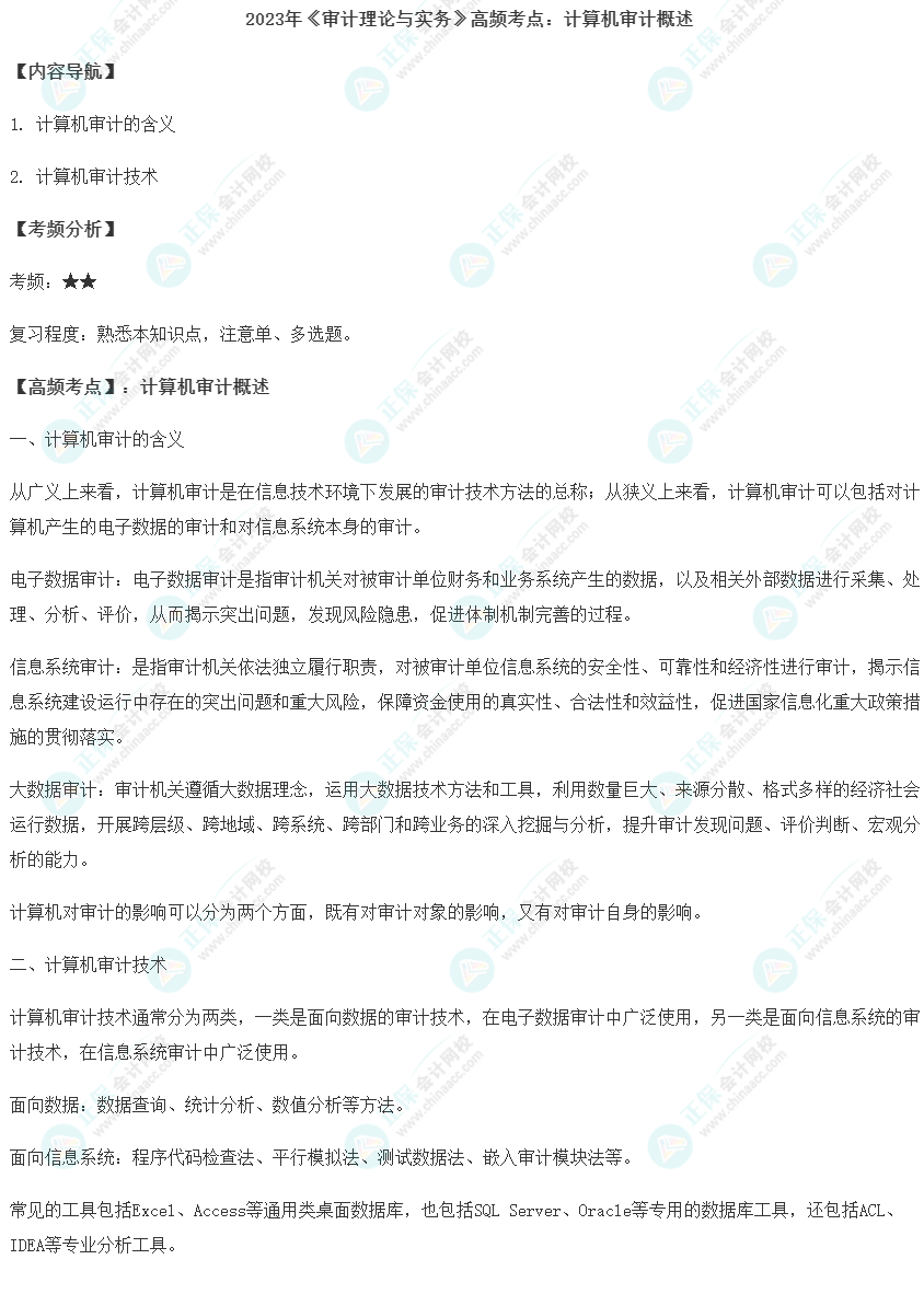 推荐阅读:2023年初级审计师《审计理论与实务》各章节高频考点汇总