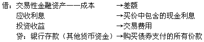 投资收益 →交易费用贷:银行存款(其他货币资金) →购买股票支付的所有价款
