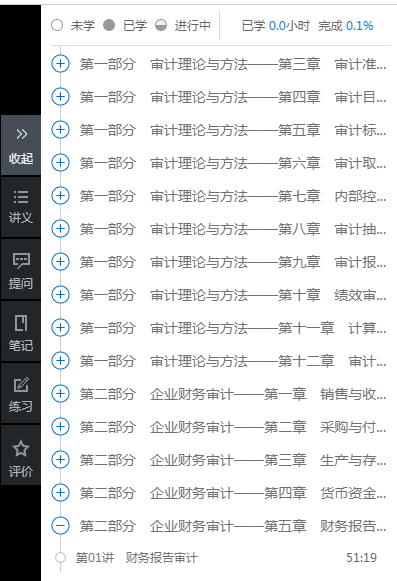截止至7月12日,审计师《审计理论与实务》开课及题库更新进度如下: