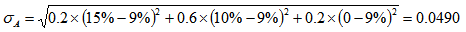 A项投资的期望报酬率=15%×0.20+10%×0.60+0×0.20=9%