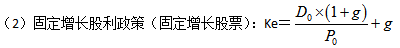 (1)固定股利政策(零增长股票):Ke=D0/P0