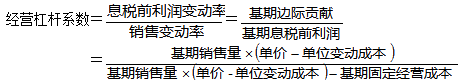 上述公式表明,影响经营杠杆系数的因素包括:销量、单价、单位变动成本和固定成本(与影响息税前利润的因素相同)。