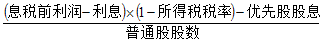 普通股每股收益=