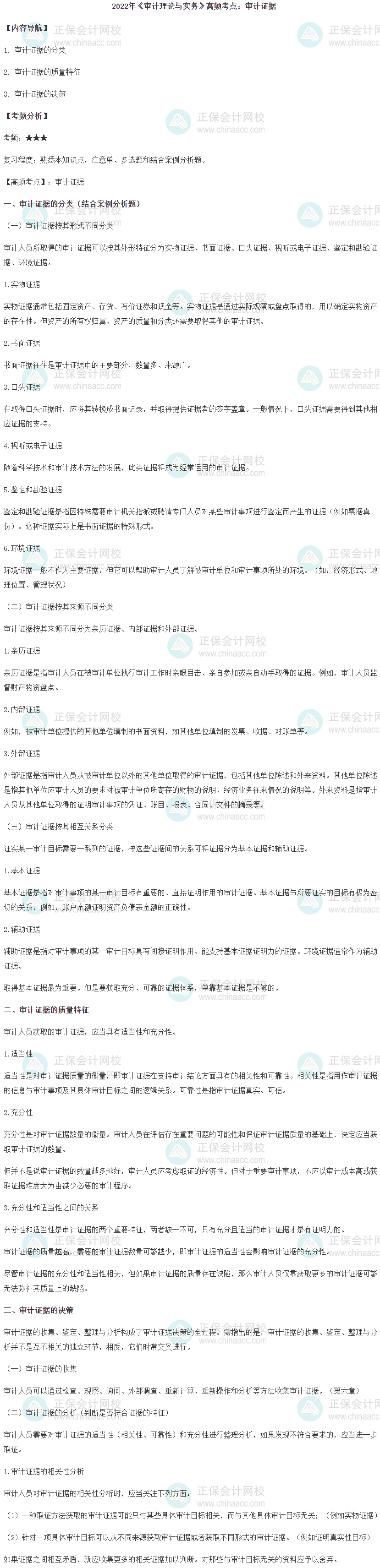 备考时间越来越少,大家一定要重点关注考试的重难点!正保会计网校为大家精心整理了初级《审计理论与实务》高频考点,帮助大家高效备考!以下是2022年初级《审计理论与实务》第一部分第五章的高频考点,一起来看一下吧!