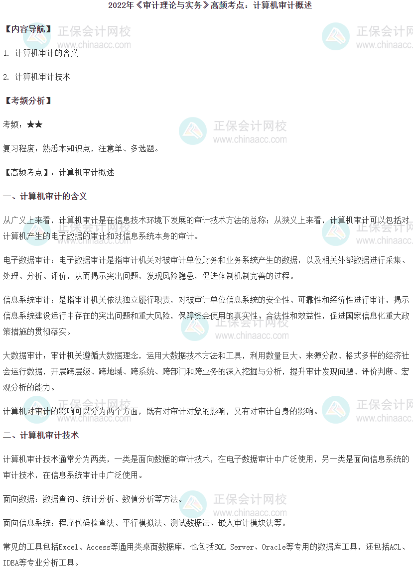 备考时间越来越少,大家一定要重点关注考试的重难点!正保会计网校为大家精心整理了初级《审计理论与实务》高频考点,帮助大家高效备考!以下是2022年初级《审计理论与实务》第一部分第十一章的高频考点,一起来看一下吧!