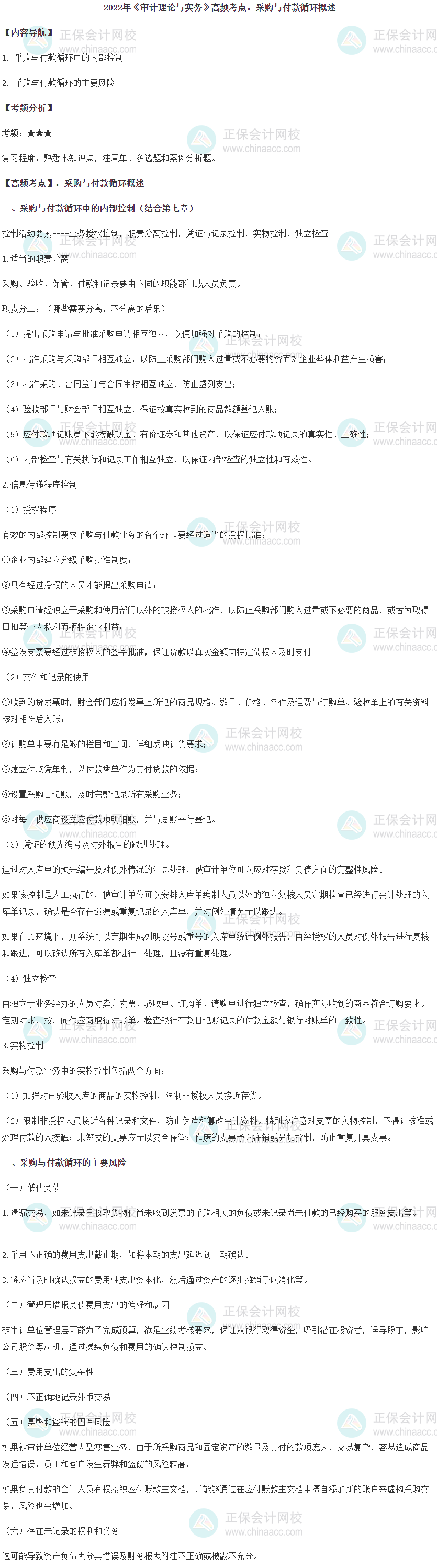 备考时间越来越少,大家一定要重点关注考试的重难点!正保会计网校为大家精心整理了初级《审计理论与实务》高频考点,帮助大家高效备考!以下是2022年初级《审计理论与实务》第二部分第二章的高频考点,一起来看一下吧!
