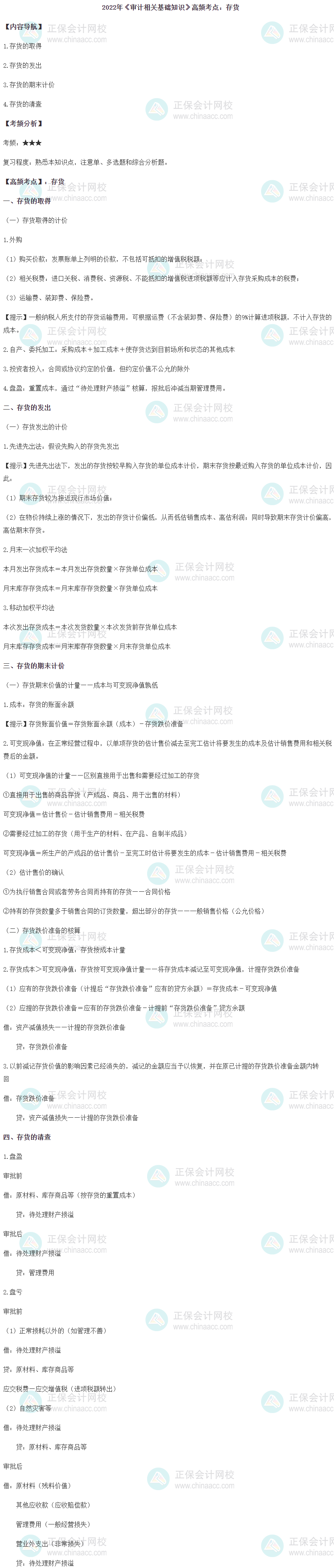 2022初级《审计相关基础知识》高频考点:存货