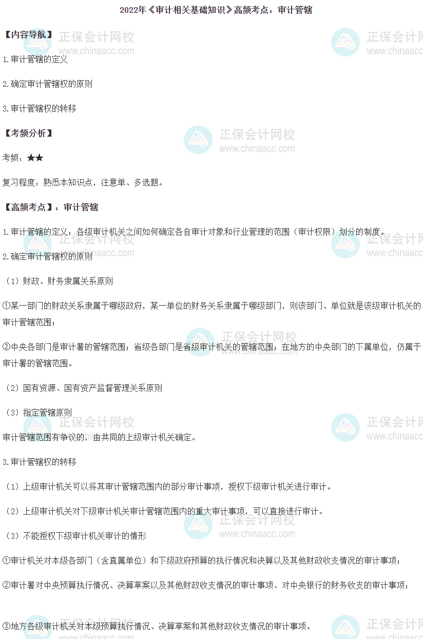 备考时间越来越少,大家一定要重点关注考试的重难点!正保会计网校为大家精心整理了初级《审计相关基础知识》高频考点,帮助大家高效备考!以下是2022年初级《审计相关基础知识》第四部分第四章的高频考点,一起来看一下吧!