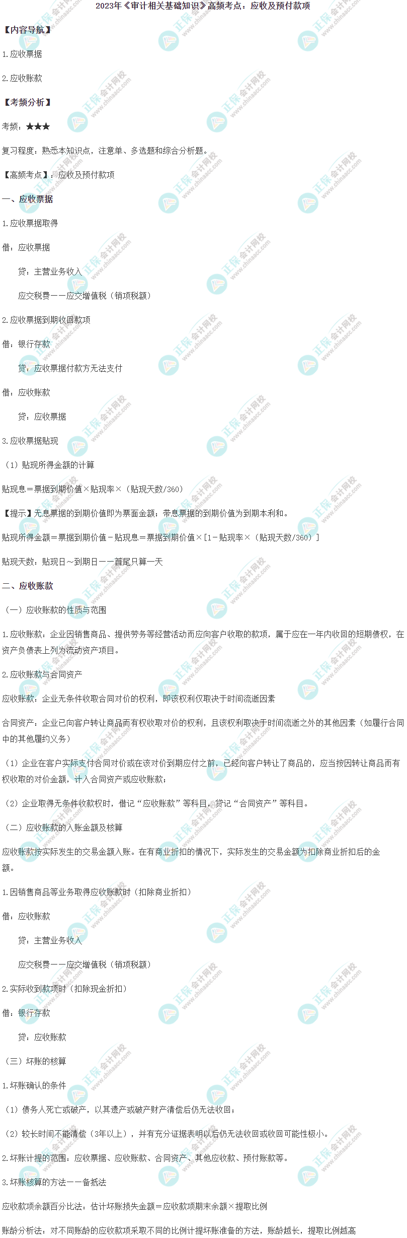 2023年初级《审计相关基础知识》各章节哪些知识点经常考呢?老师给大家总结了!下面先看看2023年初级《审计相关基础知识》高频考点:应收及预付账款,好好复习哦!