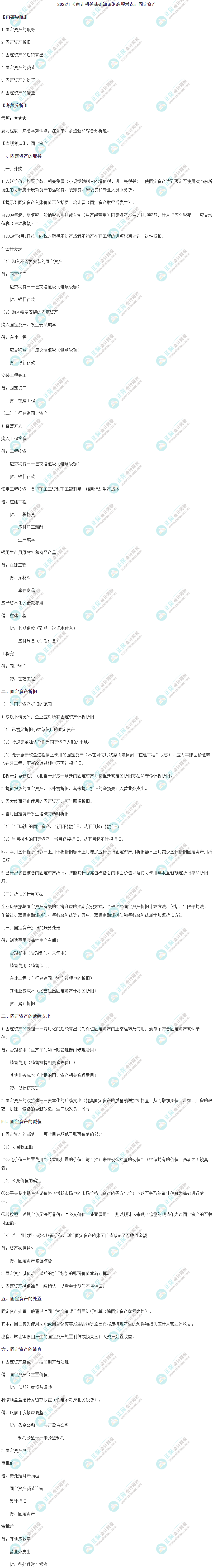 2023初级《审计相关基础知识》高频考点:固定资产