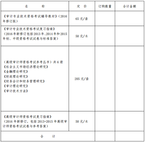 2016年度全国审计专业技术资格考试学习参考书征订表