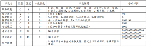级别代号:“0”代表初级资格,“1”代表审计师资格,“2”代表高级审计师资格。省(自治区、直辖市)代号和考试地区(市)代号采用审计专 业技术资格考试全国统一编码(请在审计考试网()中进行下载)。