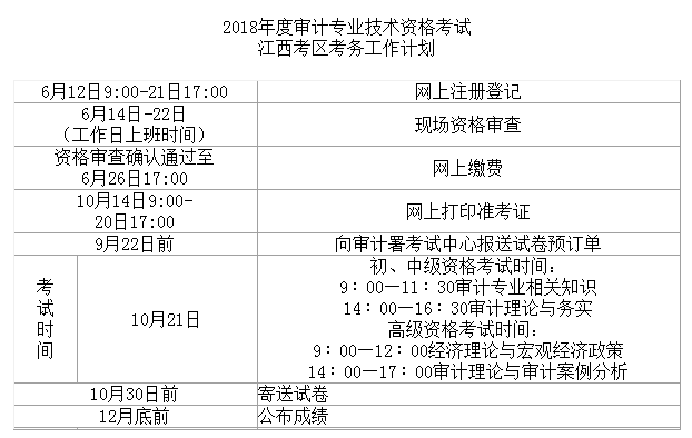 2018年度审计专业技术资格考试江西考区考务工作计划