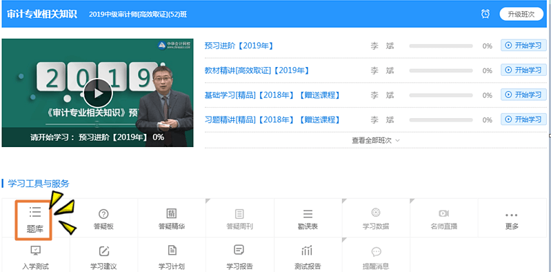 2019年审计师超值精品班或高效取证班获取各科目题库做题权限>>