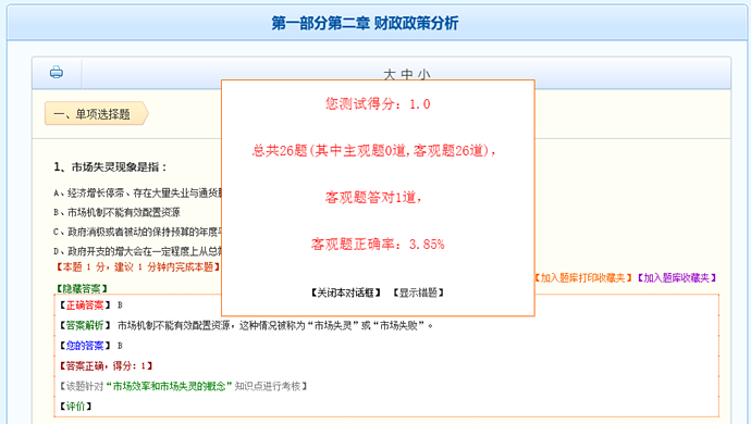 进入题库后,答题完成,提交试卷后,会显示答题正确率。