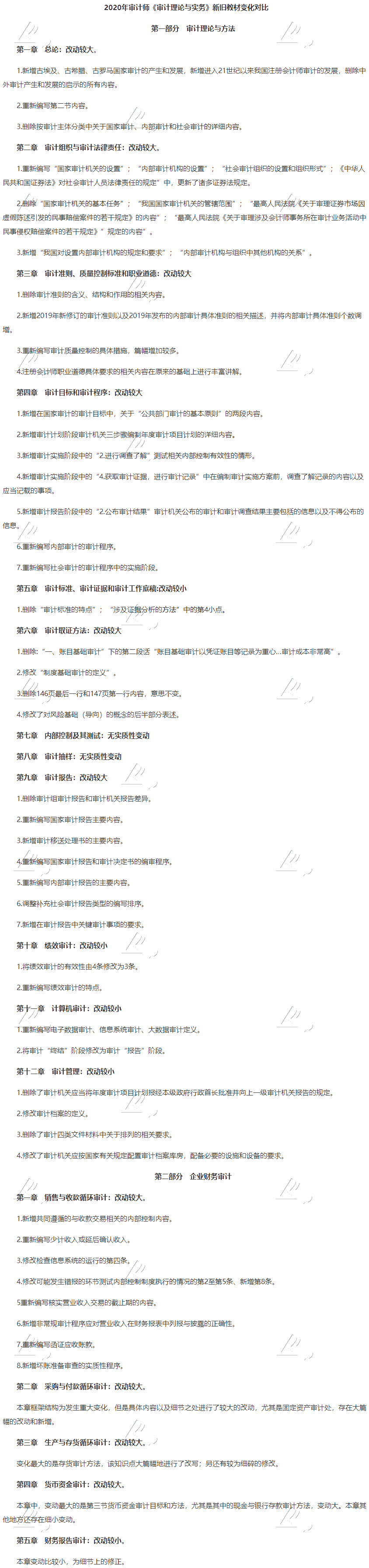 小编提醒大家,一定要重视新增或变化的内容!在审计师考试过程中变动的地方基本上就是考点。