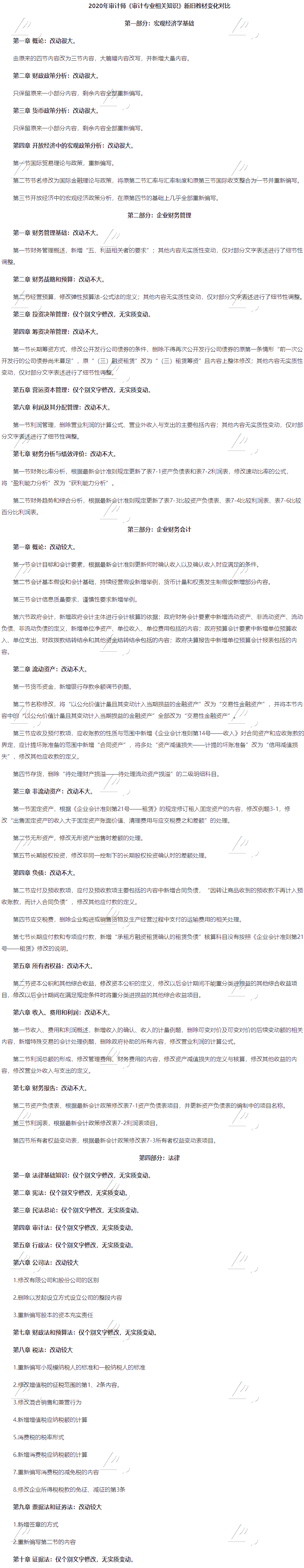 2020年审计师考试教材已经上市,网校教学团队特地对新旧教材内容变化进行了分析,教材变动超35% !那这些变动的内容需不需要重点掌握?