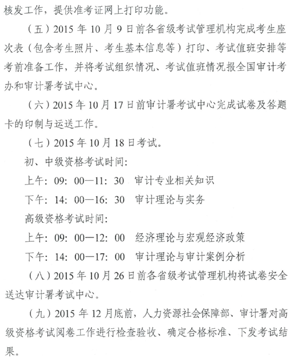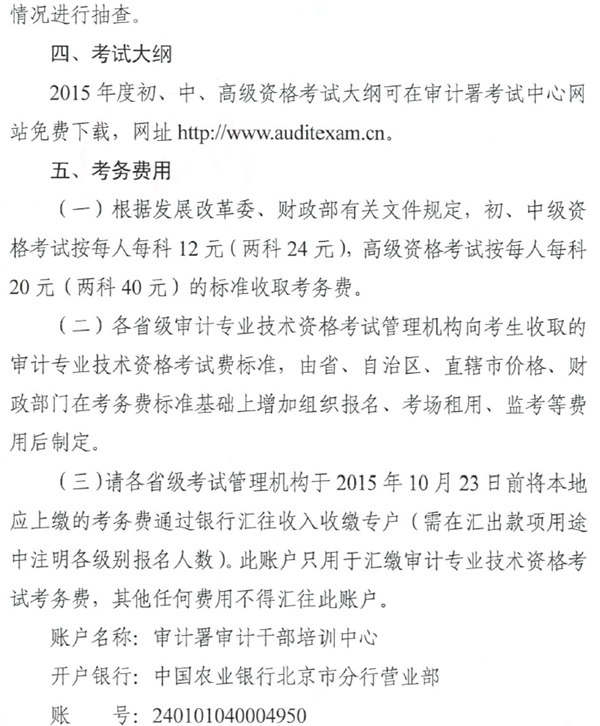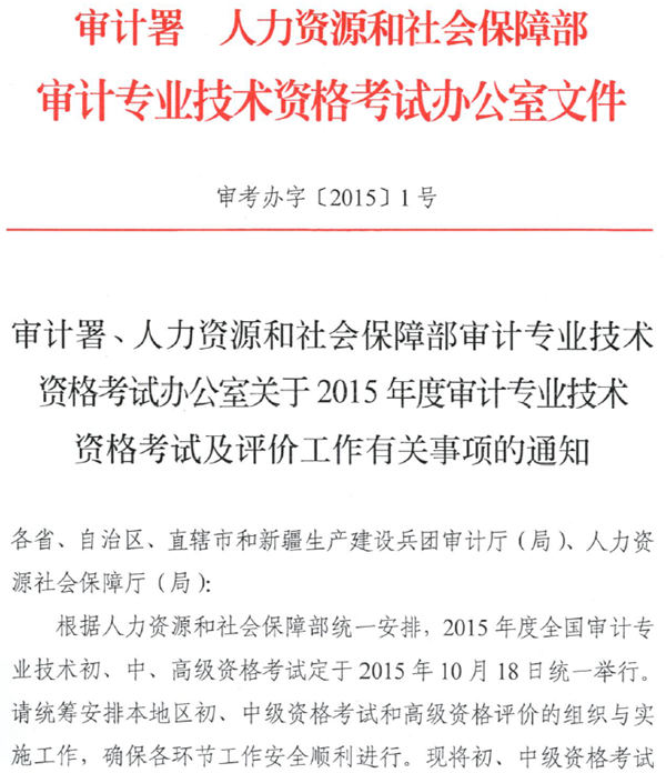 关于2015年度审计专业技术资格考试及评价工作有关事项的通知