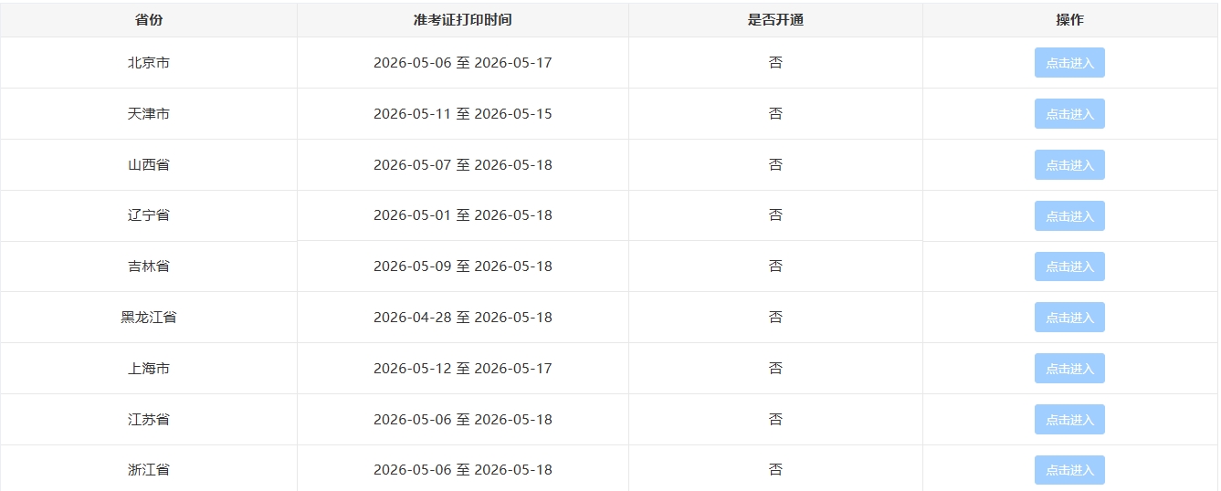 | 准考证打印入口开通 | 准考证打印常见问题 |