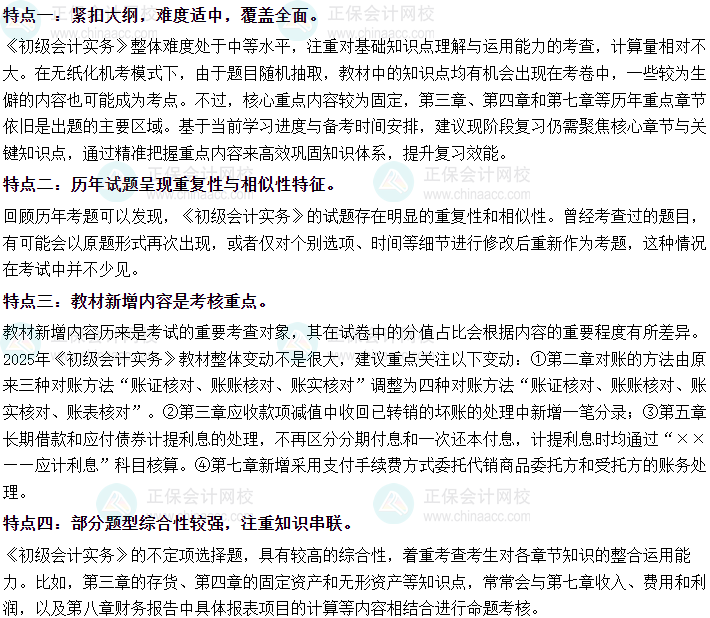 正保会计网校的老师们通过对历年《初级会计实务》试题的系统研究,总结出了以下出题规律和趋势,为考生备考提供有效指引。
