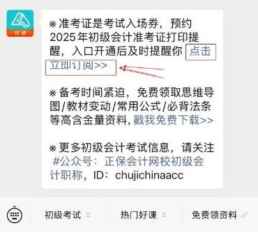 预约成功之后,网校会在准考证入口开放当天提醒您2025年初级会计职称考试准考证打印入口开通!让你尽快打印,帮助您顺利参加考试~