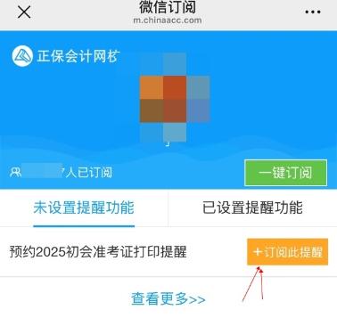 三、找到“预约2025初会准考证打印提醒”,点击右侧“+订阅此提醒”如下图1,会出现“初会考友交流群”如图2,可以扫码加群。