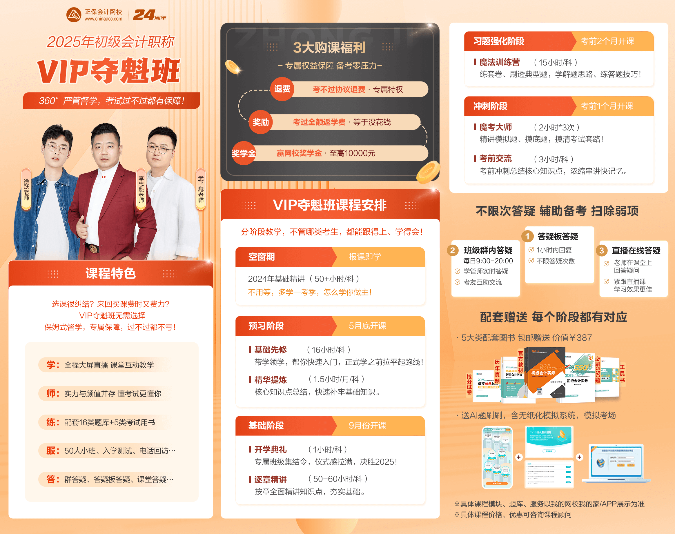 VIP班为全程直播课,同学们在课上不只听讲,也可以和老师互动,及时解答疑惑。2025考期VIP班改名为“VIP夺魁班”,同样也是全程直播,由人气师资武子赫、徐跃老师主讲,李忠魁老师做精华提炼,一起助力备考!