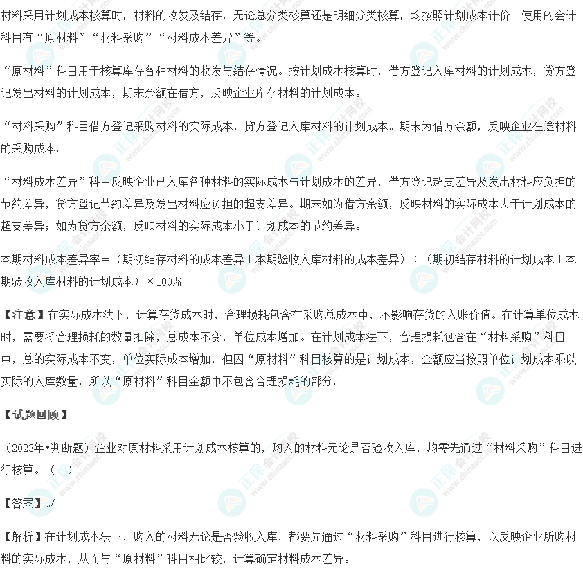 我们一起来学习2024年《初级会计实务》高频考点:原材料采用计划成本核算。本考点属于《初级会计实务》第三章流动资产第四节存货的内容。